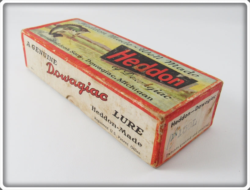 This is a nice old Heddon Perch 150 Dowagiac Minnow lure box # 150 L that was sold on Tough Lures! Vintage and antique fishing lures are added for sale often so keep checking back! I buy old lures so feel free to contact me if you have any to sell.