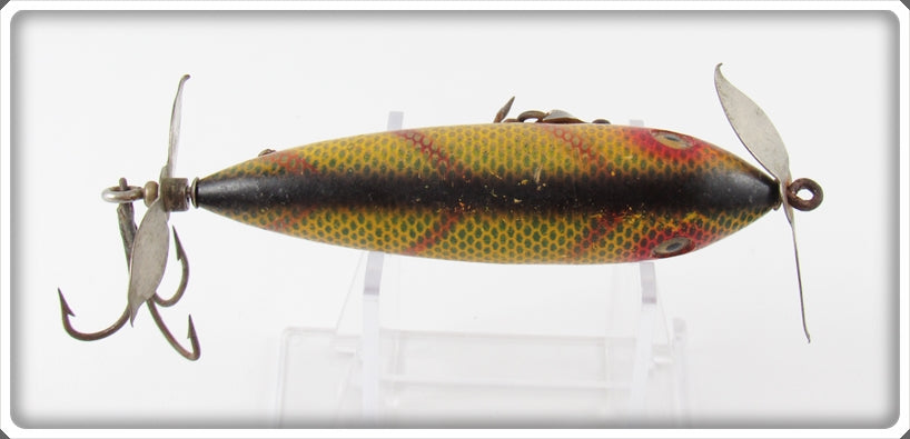 This is a nice old Heddon Perch Early Pressed Eye Wounded Spook lure # 9140 L that was sold on Tough Lures! Vintage and antique fishing lures are added for sale often so keep checking back! I buy old lures so feel free to contact me if you have any to sell.