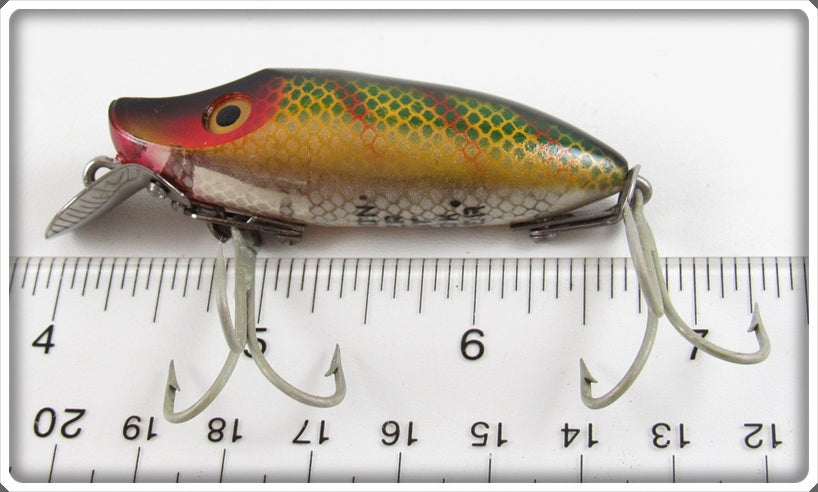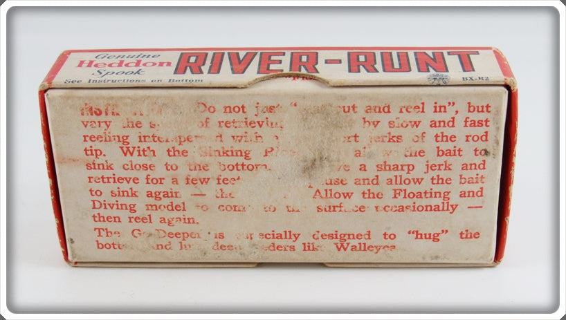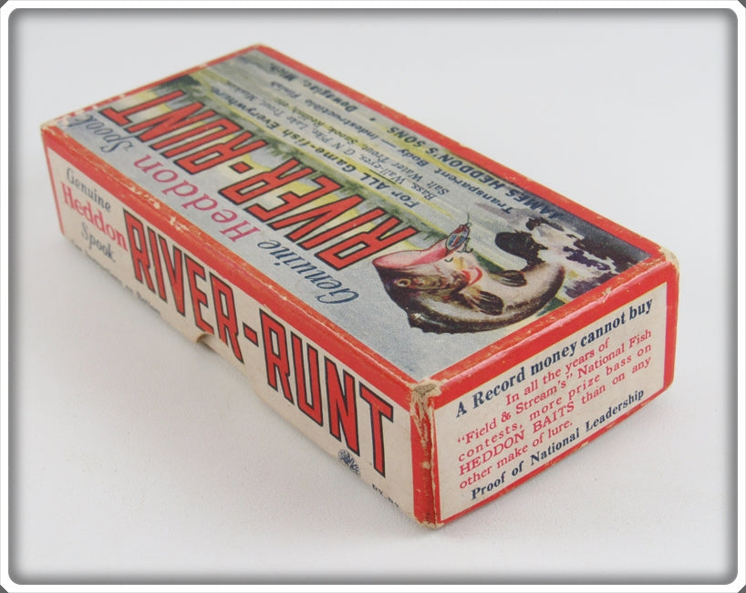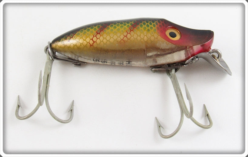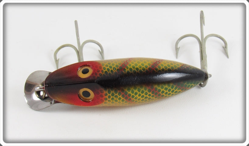 This is a nice old Heddon Perch Early Two Piece Hardware River Runt lure # 9110L that was sold on Tough Lures! Vintage and antique fishing lures are added for sale often so keep checking back! I buy old lures so feel free to contact me if you have any to sell.