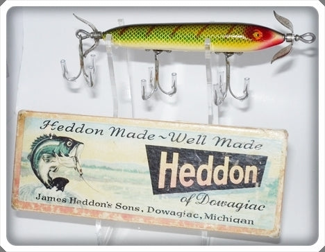 This is a nice old Heddon Perch 130 Torpedo lure # 139L that was sold on Tough Lures! Vintage and antique fishing lures are added for sale often so keep checking back! I buy old lures so feel free to contact me if you have any to sell.