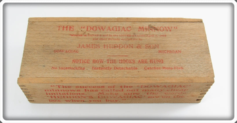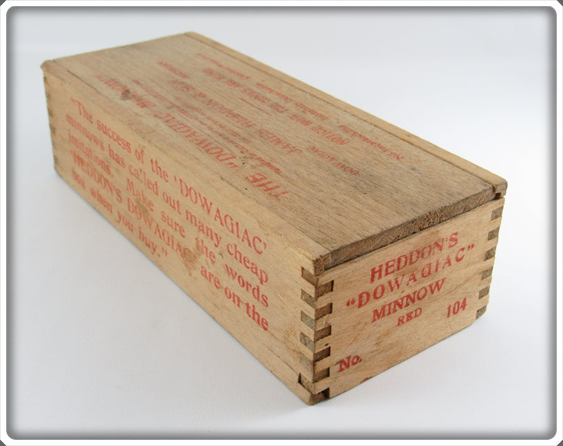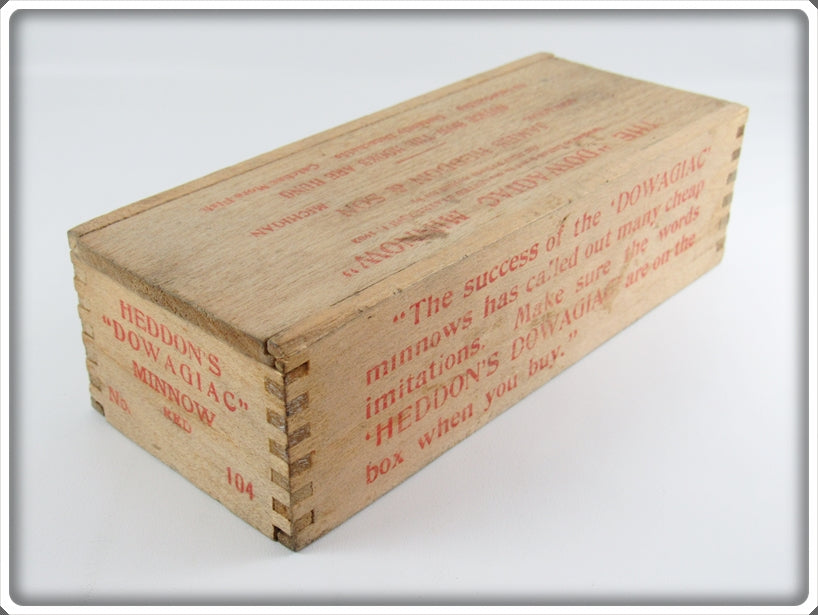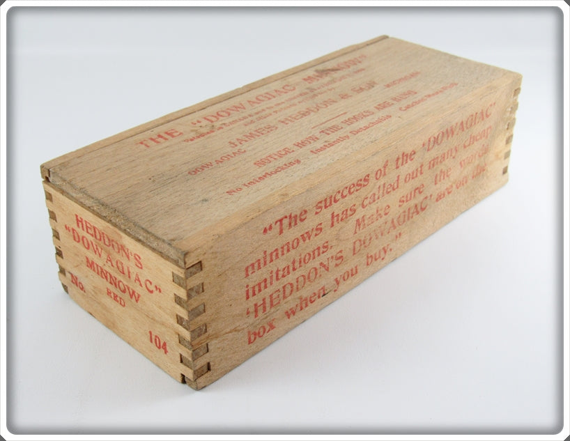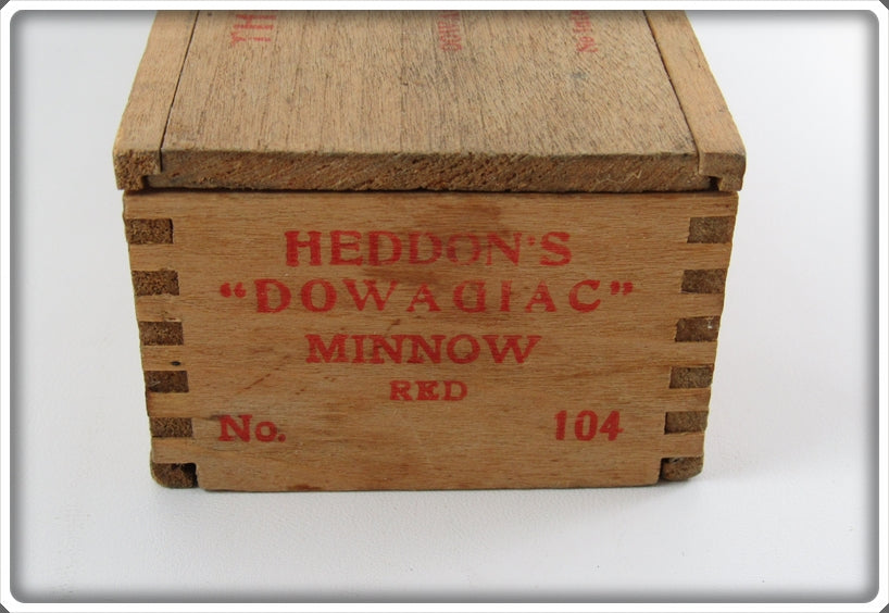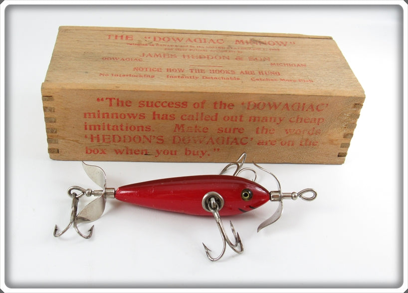 This is a nice old James Heddon & Son Red Dowagiac Minnow lure # 104 that was sold on Tough Lures! Vintage and antique fishing lures are added for sale often so keep checking back! I buy old lures so feel free to contact me if you have any to sell.