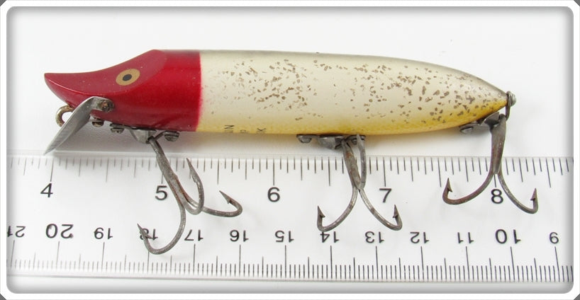 This is a nice old Heddon Red Head Flitter Vamp Spook lure # 9500 RHF that was sold on Tough Lures! Vintage and antique fishing lures are added for sale often so keep checking back! I buy old lures so feel free to contact me if you have any to sell.