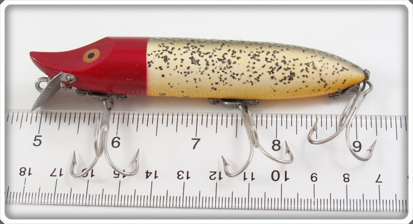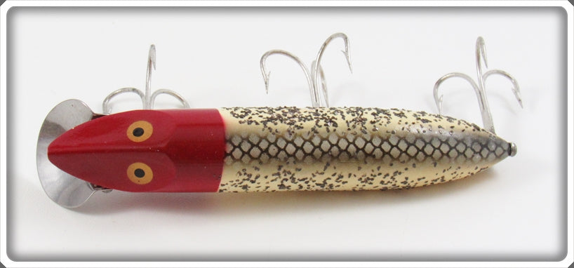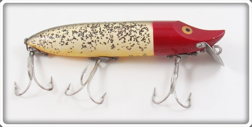This is a nice old Heddon Red Head Flitter Vamp Spook lure that was sold on Tough Lures! Vintage and antique fishing lures are added for sale often so keep checking back! I buy old lures so feel free to contact me if you have any to sell.