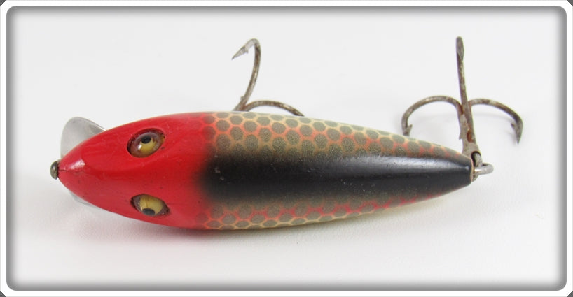 This is a nice old Heddon Red Head Shiner Scale 110 River Runt lure # 119PRH that was sold on Tough Lures! Vintage and antique fishing lures are added for sale often so keep checking back! I buy old lures so feel free to contact me if you have any to sell.