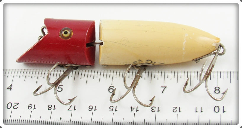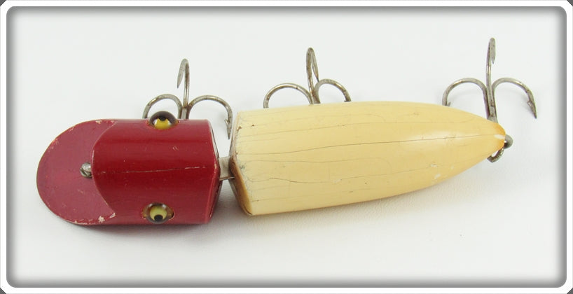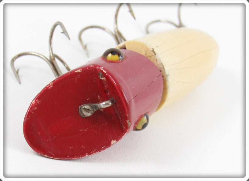 This is a nice old Heddon # 8302 Red Head White Zig Wag lure that was sold on Tough Lures! Vintage and antique fishing lures are added for sale often so keep checking back! I buy old lures so feel free to contact me if you have any to sell.