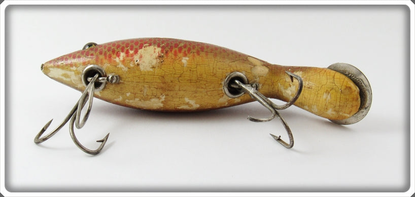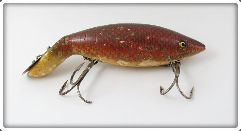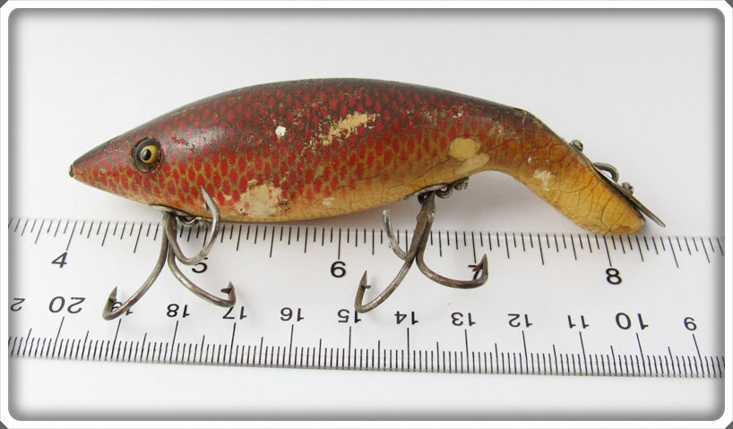 This is a nice old Heddon Red Scale Tadpolly lure # 5009H that was sold on Tough Lures! Vintage and antique fishing lures are added for sale often so keep checking back! I buy old lures so feel free to contact me if you have any to sell.