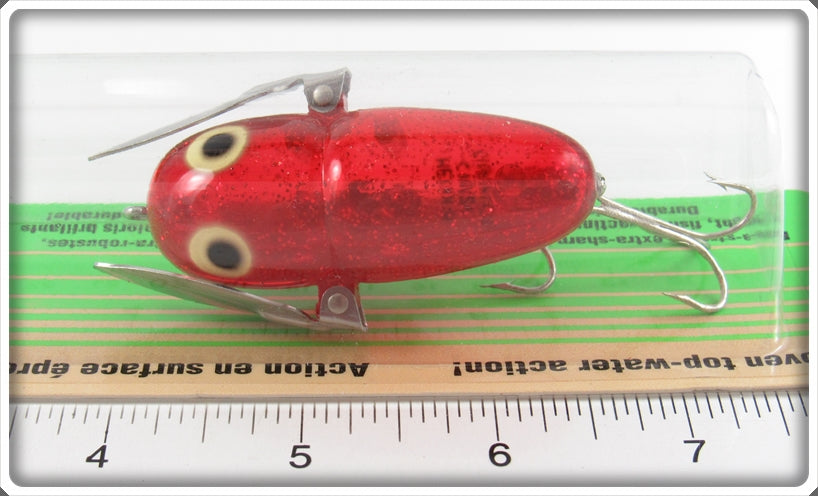 This is a nice old Heddon Red Sparkle Crazy Crawler lure # X912075 that was sold on Tough Lures! Vintage and antique fishing lures are added for sale often so keep checking back! I buy old lures so feel free to contact me if you have any to sell.