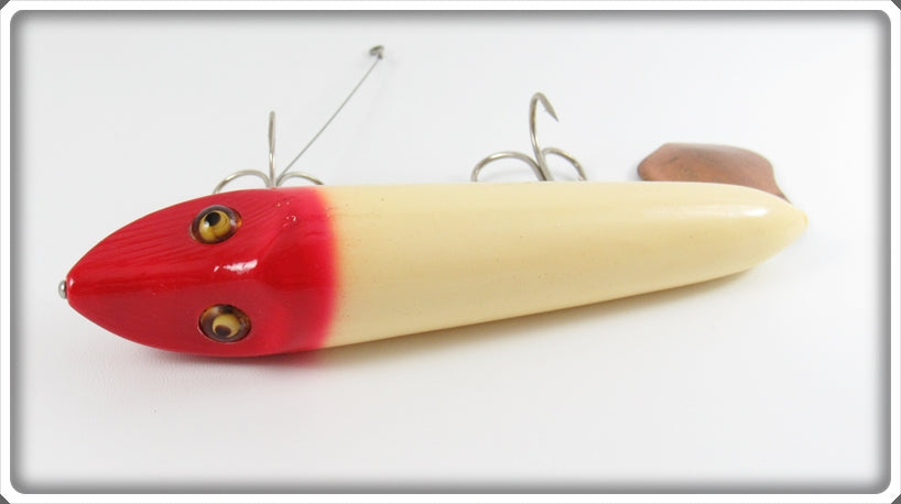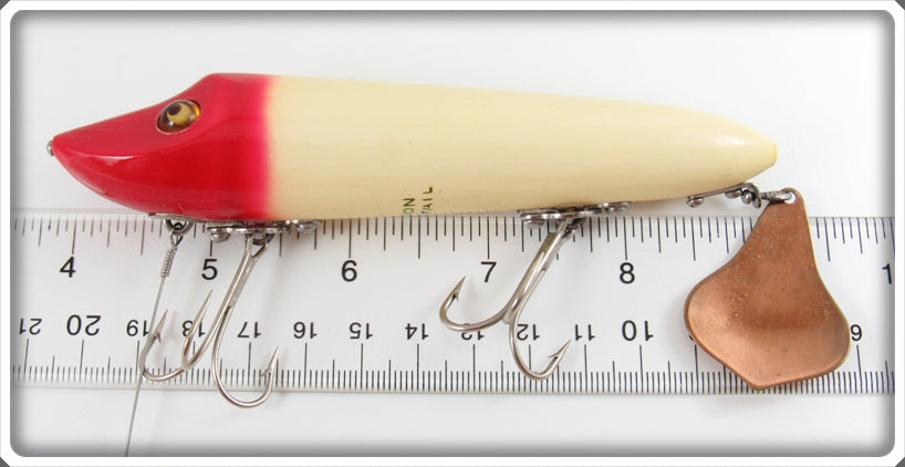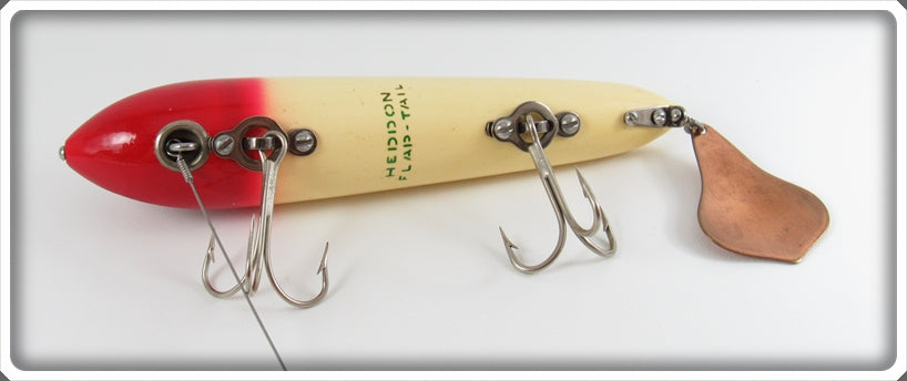This is a nice old Heddon Red & White Musky Flaptail lure #7052 that was sold on Tough Lures! Vintage and antique fishing lures are added for sale often so keep checking back! I buy old lures so feel free to contact me if you have any to sell.