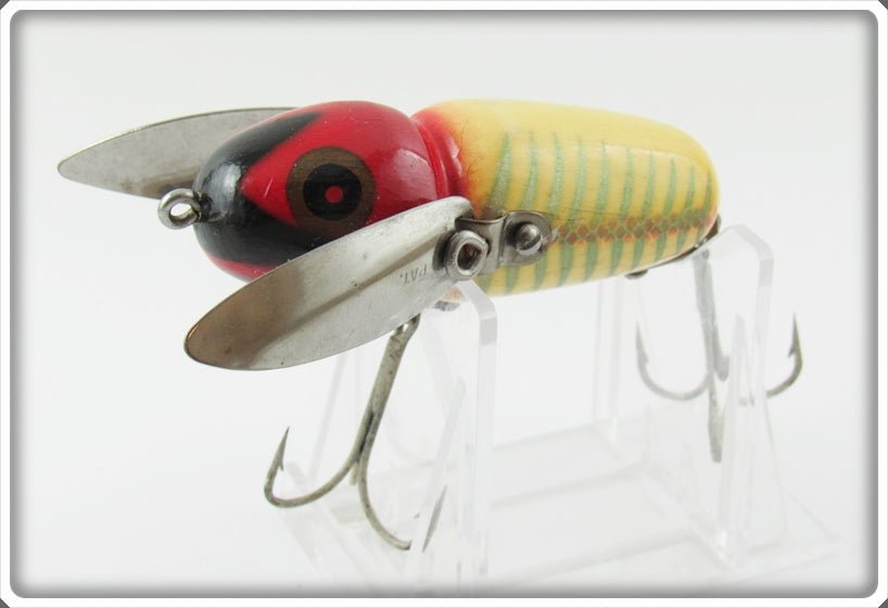 This is a nice old Heddon Crazy Crawler lure # 2100 XRW that was sold on Tough Lures! Vintage and antique fishing lures are added for sale often so keep checking back! I buy old lures so feel free to contact me if you have any to sell.