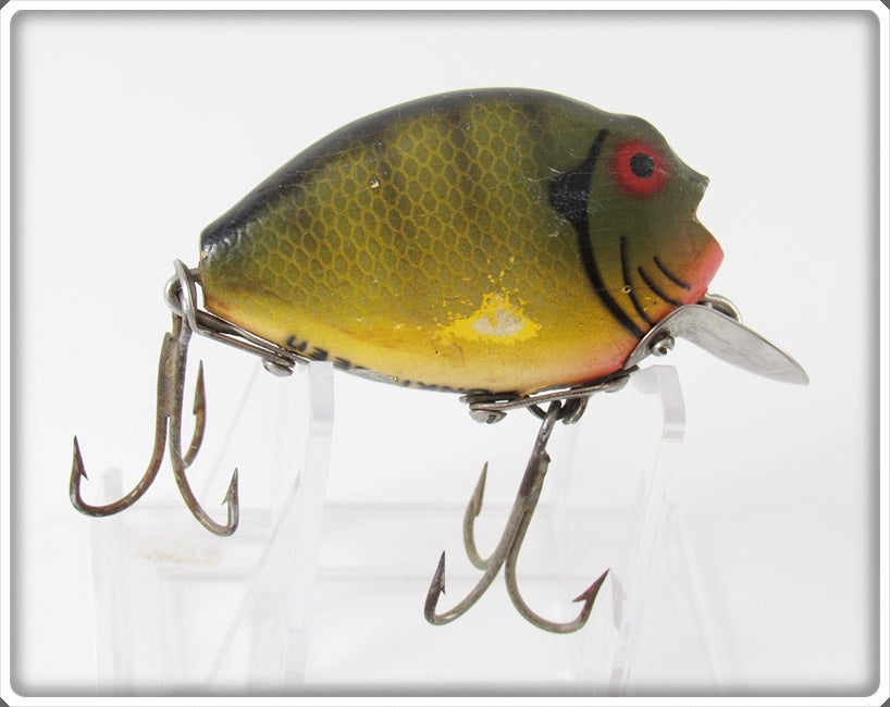 This is a nice old Heddon Rockbass Sinking Punkin-Seed lure # 730 ROB that was sold on Tough Lures! Vintage and antique fishing lures are added for sale often so keep checking back! I buy old lures so feel free to contact me if you have any to sell.