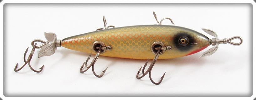This is a nice old Heddon Shiner Scale 150 Dowagiac Minnow 159P lure that was sold on Tough Lures! Vintage and antique fishing lures are added for sale often so keep checking back! I buy old lures so feel free to contact me if you have any to sell.