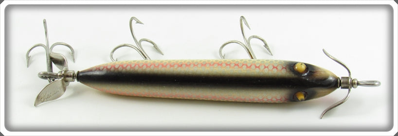 This is a nice old Heddon Shiner Scale Torpedo 130P lure that was sold on Tough Lures! Vintage and antique fishing lures are added for sale often so keep checking back! I buy old lures so feel free to contact me if you have any to sell.