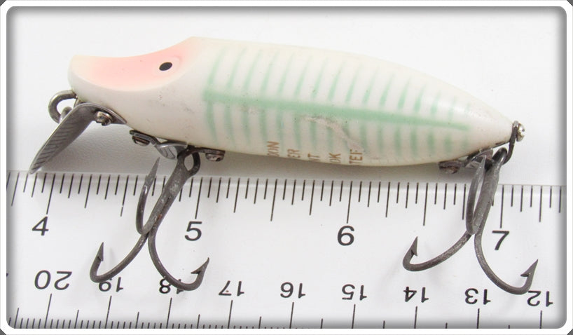This is a nice old Heddon Spook Ray Chartreuse & White River Runt lure that was sold on Tough Lures! Vintage and antique fishing lures are added for sale often so keep checking back! I buy old lures so feel free to contact me if you have any to sell.