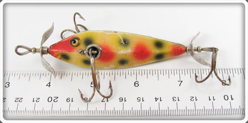 This is a nice old Heddon Dowagiac Spotted 0 Minnow lure that was sold on Tough Lures! Vintage and antique fishing lures are added for sale often so keep checking back! I buy old lures so feel free to contact me if you have any to sell.