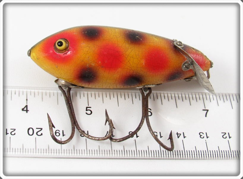 This is a nice old Heddon Spotted Baby Crab Wiggler lure # 1900 S that was sold on Tough Lures! Vintage and antique fishing lures are added for sale often so keep checking back! I buy old lures so feel free to contact me if you have any to sell.