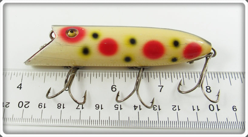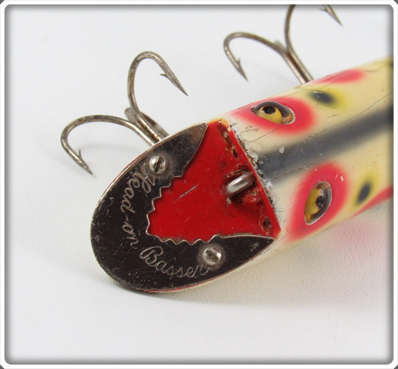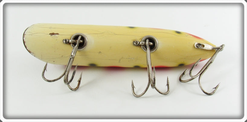This is a nice old Heddon Strawberry Spotted Head On Basser lure # 8500S that was sold on Tough Lures! Vintage and antique fishing lures are added for sale often so keep checking back! I buy old lures so feel free to contact me if you have any to sell.