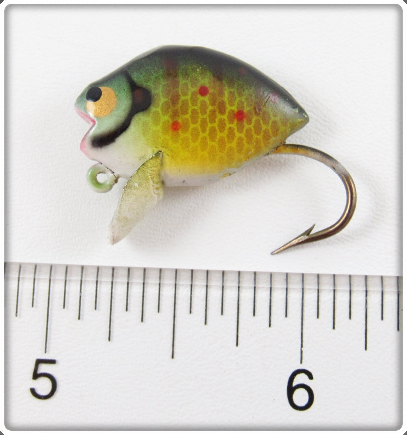 This is a nice old Heddon Sunfish Punkie Spook lure # 980 SUN that was sold on Tough Lures! Vintage and antique fishing lures are added for sale often so keep checking back! I buy old lures so feel free to contact me if you have any to sell.