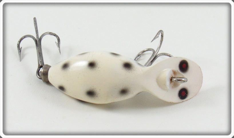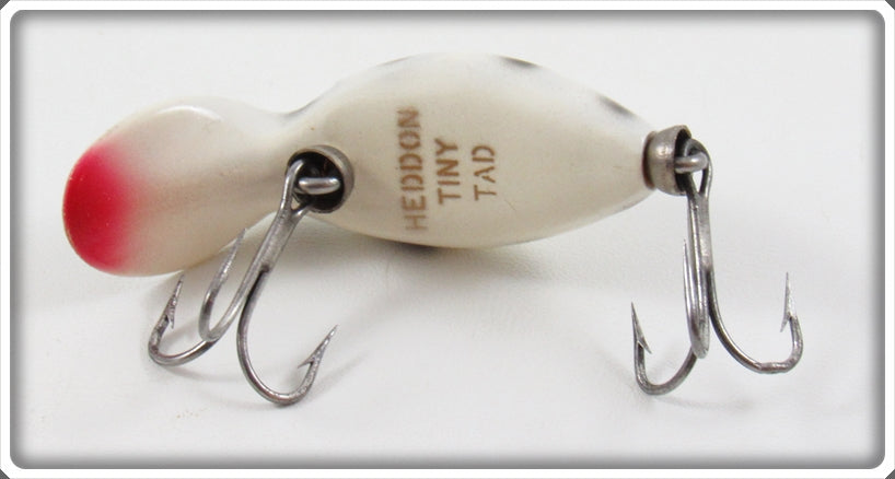 This is a nice old Heddon White Black Spots Tiny Tad 390 WBS lure that was sold on Tough Lures! Vintage and antique fishing lures are added for sale often so keep checking back! I buy old lures so feel free to contact me if you have any to sell.
