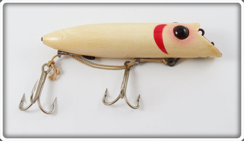 This is a nice old Heddon White Red Gill King Basser lure # 8552M that was sold on Tough Lures! Vintage and antique fishing lures are added for sale often so keep checking back! I buy old lures so feel free to contact me if you have any to sell.