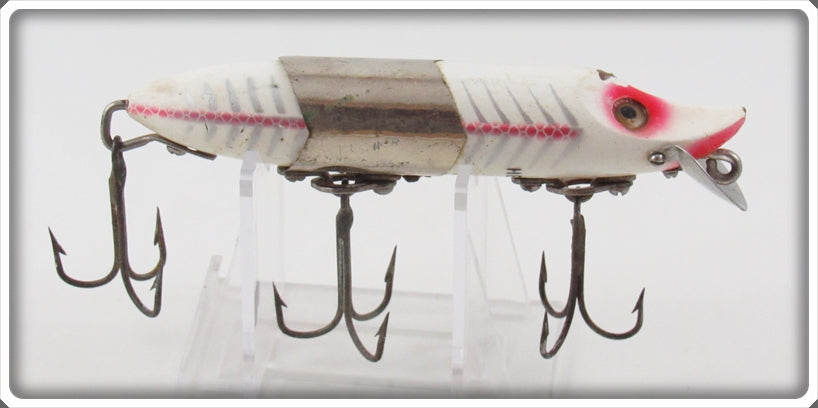 This is a nice old Heddon White Shore Kingfish Vamp Spook KF9752XS that was sold on Tough Lures! Vintage and antique fishing lures are added for sale often so keep checking back! I buy old lures so feel free to contact me if you have any to sell.
