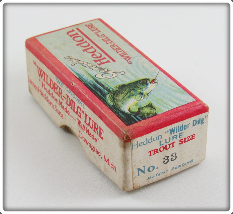 This is a nice old Heddon # 32 Wilder's Fancy Trout Size Wilder Dilg lure in # 33 Zane Grey Box that was sold on Tough Lures! Vintage and antique fishing lures are added for sale often so keep checking back! I buy old lures so feel free to contact me if you have any to sell.