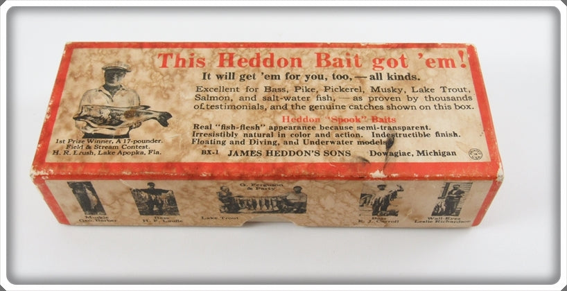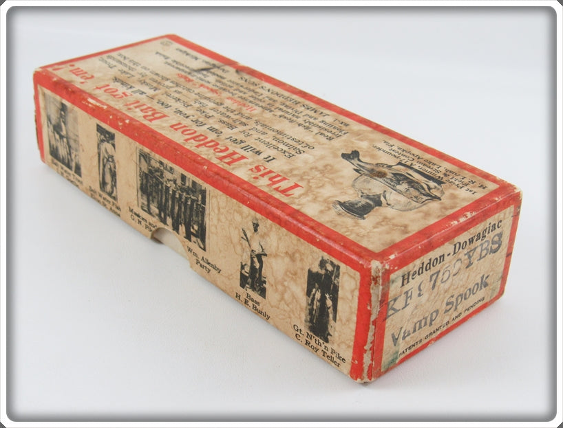 This is a nice old Heddon Yellow With Black Stripes Tiger / Bumble Bee King Fish Vamp Spook lure box # KF9759YBS that was sold on Tough Lures! Vintage and antique fishing lures are added for sale often so keep checking back! I buy old lures so feel free to contact me if you have any to sell.