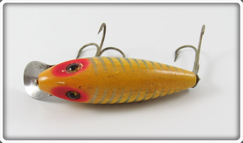 This is a nice old Heddon Yellow Shore 110 River Runt lure # 119XRY that was sold on Tough Lures! Vintage and antique fishing lures are added for sale often so keep checking back! I buy old lures so feel free to contact me if you have any to sell.