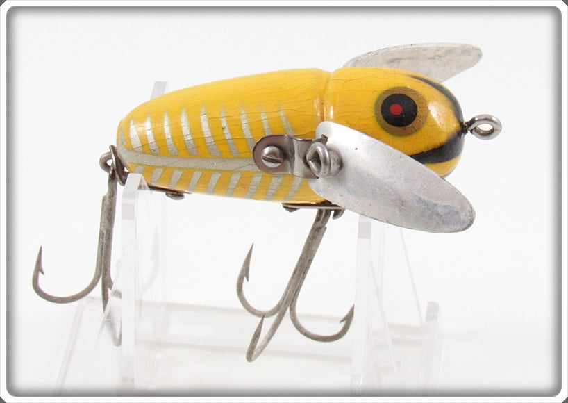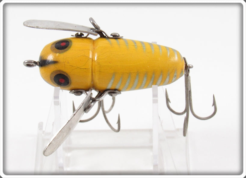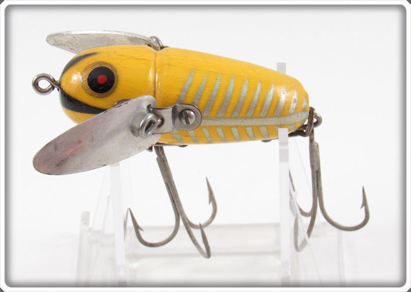 This is a nice old Heddon Yellow Shore Crazy Crawler 2120 XRY lure that was sold on Tough Lures! Vintage and antique fishing lures are added for sale often so keep checking back! I buy old lures so feel free to contact me if you have any to sell.