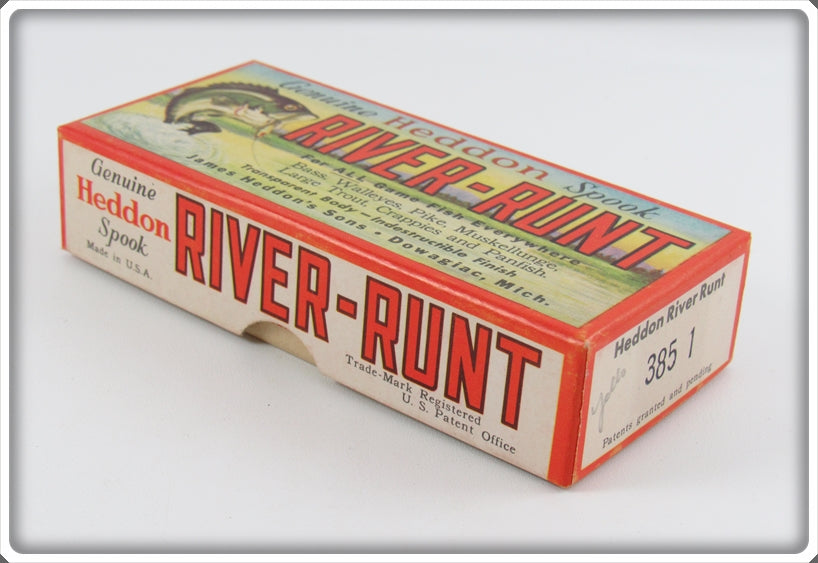 This is a nice old Heddon Yellow Sonic Lure In River Runt Research Box # 385-1 that was sold on Tough Lures! Vintage and antique fishing lures are added for sale often so keep checking back! I buy old lures so feel free to contact me if you have any to sell.