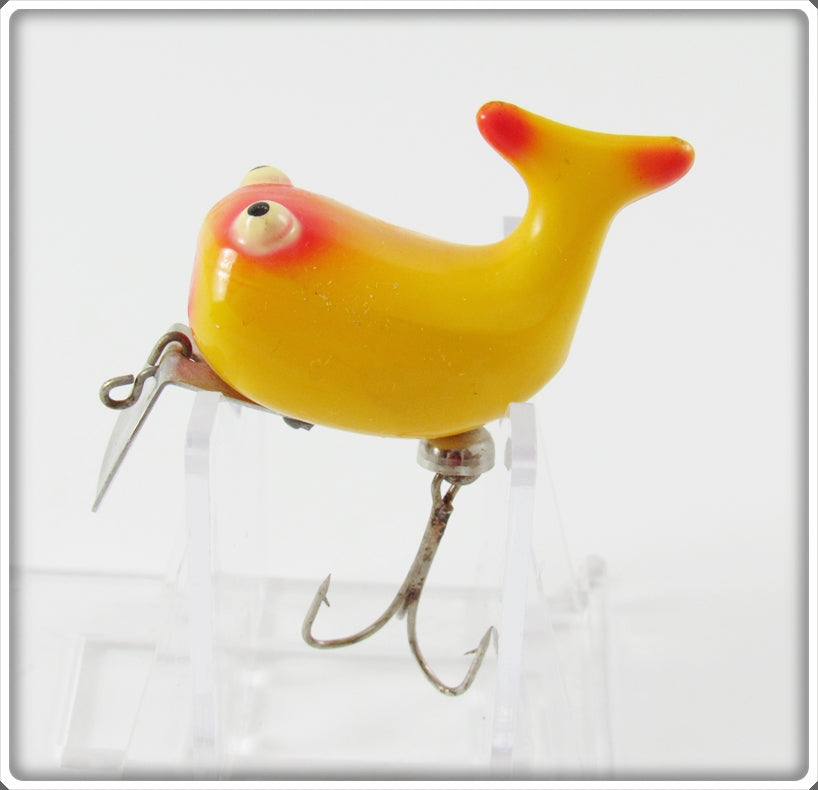 This is a nice old Heddon Yellow Top Kicker Paint Over lure that was sold on Tough Lures! Vintage and antique fishing lures are added for sale often so keep checking back! I buy old lures so feel free to contact me if you have any to sell.