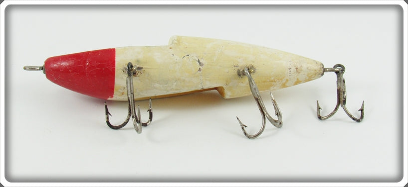 This is a nice old J.R. Schoonmaker Red & White Schoonie's Skooter lure that was sold on Tough Lures! Vintage and antique fishing lures are added for sale often so keep checking back! I buy old lures so feel free to contact me if you have any to sell.