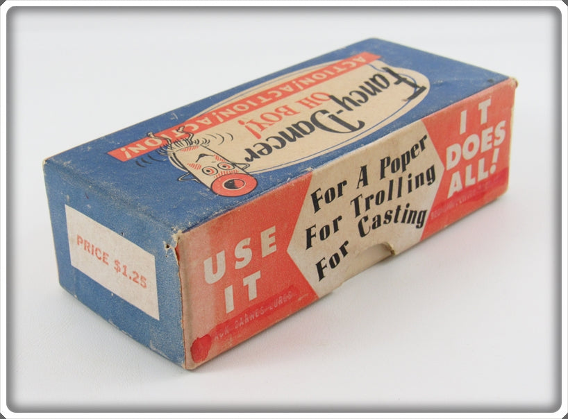 This is a nice old Jack Carnes Lures Red & White Fancy Dancer lure that was sold on Tough Lures! Vintage and antique fishing lures are added for sale often so keep checking back! I buy old lures so feel free to contact me if you have any to sell.