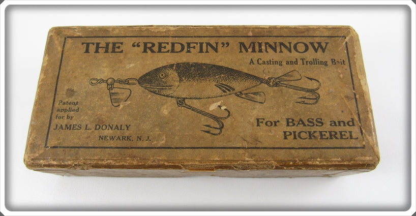 This is a nice old James L Donaly Green & White The Redfin Minnow lure that was sold on Tough Lures! Vintage and antique fishing lures are added for sale often so keep checking back! I buy old lures so feel free to contact me if you have any to sell.