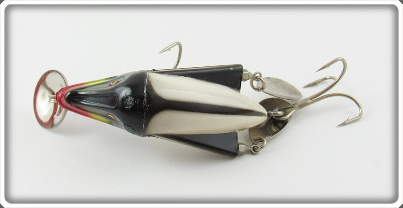 This is a nice old Jamison Black & White Wig L Twin lure # 1800 that was sold on Tough Lures! Vintage and antique fishing lures are added for sale often so keep checking back! I buy old lures so feel free to contact me if you have any to sell.