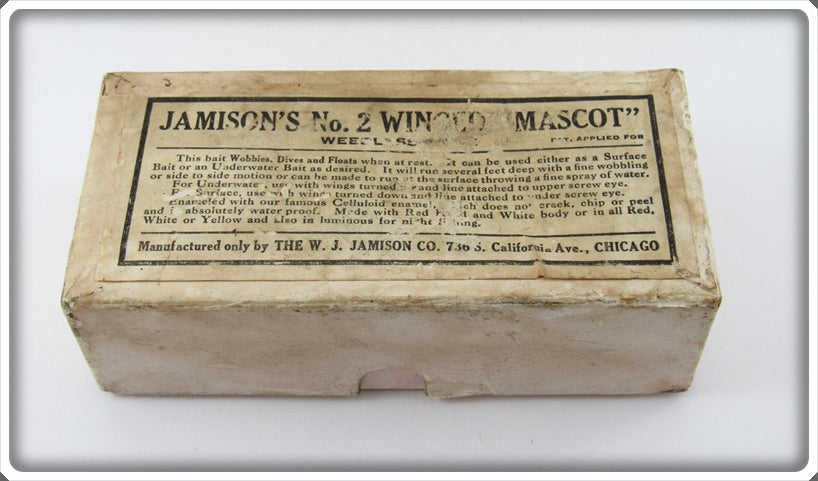 This is a nice old Jamison Rainbow Scale No. 2 Winged Mascot lure that was sold on Tough Lures! Vintage and antique fishing lures are added for sale often so keep checking back! I buy old lures so feel free to contact me if you have any to sell.