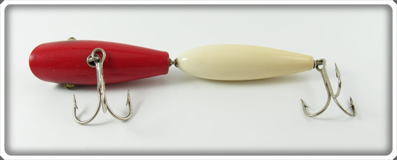 This is a nice old Jamison Red & White Musky Wig Wag Gep bait lure that was sold on Tough Lures! Vintage and antique fishing lures are added for sale often so keep checking back! I buy old lures so feel free to contact me if you have any to sell.