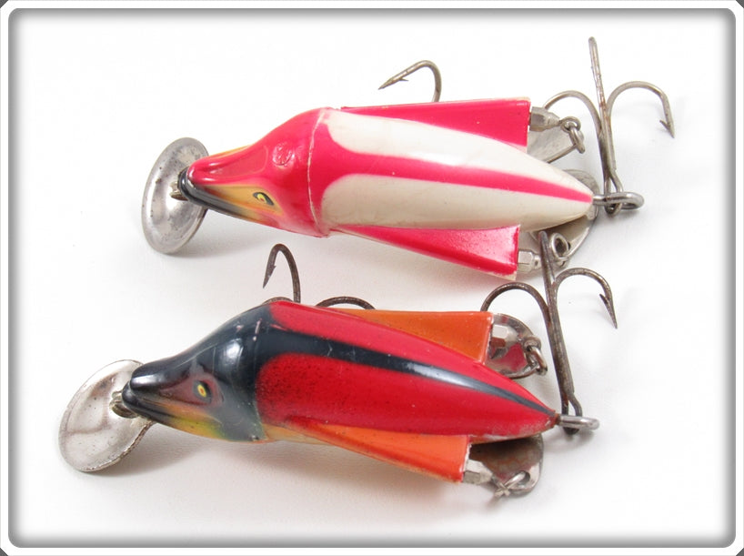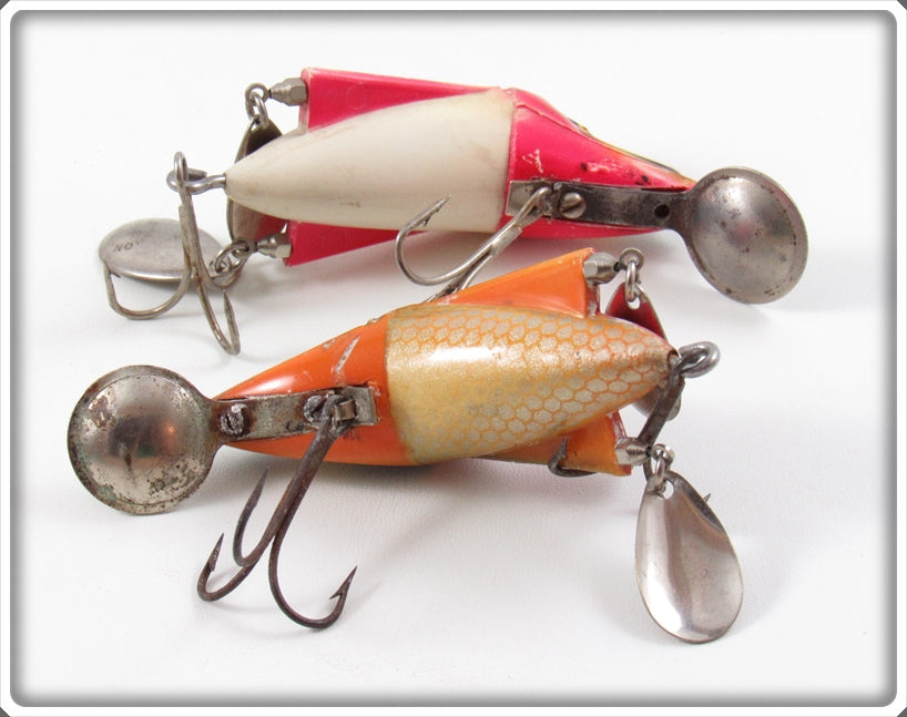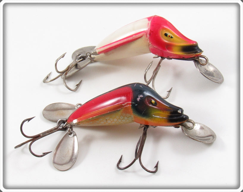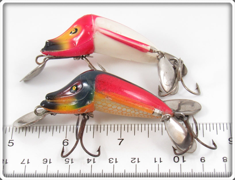 This is a nice old Jamison Red & White And Rainbow Wig L Twin Pair that was sold on Tough Lures! Vintage and antique fishing lures are added for sale often so keep checking back! I buy old lures so feel free to contact me if you have any to sell.