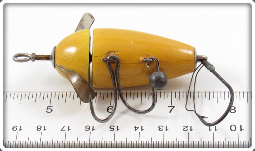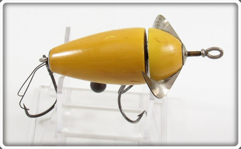 This is a nice old Jamison All Yellow Nemo Bass Bait lure that was sold on Tough Lures! Vintage and antique fishing lures are added for sale often so keep checking back! I buy old lures so feel free to contact me if you have any to sell.