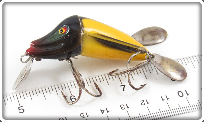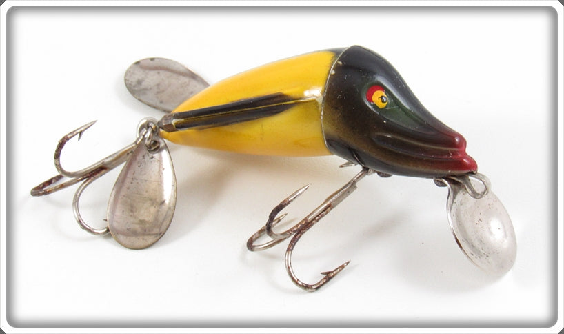 This is a nice old Jamison Yellow & Black Wig L Twin lure that was sold on Tough Lures! Vintage and antique fishing lures are added for sale often so keep checking back! I buy old lures so feel free to contact me if you have any to sell.