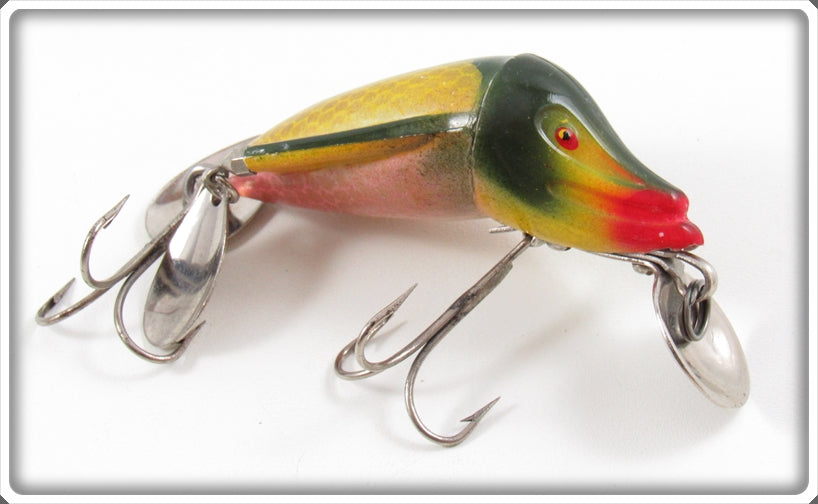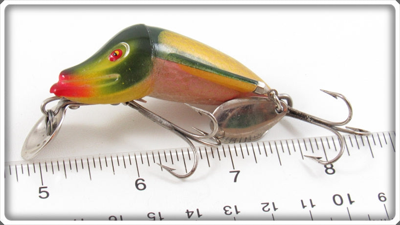This is a nice old Jamison Yellow Perch Wig L Twin lure that was sold on Tough Lures! Vintage and antique fishing lures are added for sale often so keep checking back! I buy old lures so feel free to contact me if you have any to sell.