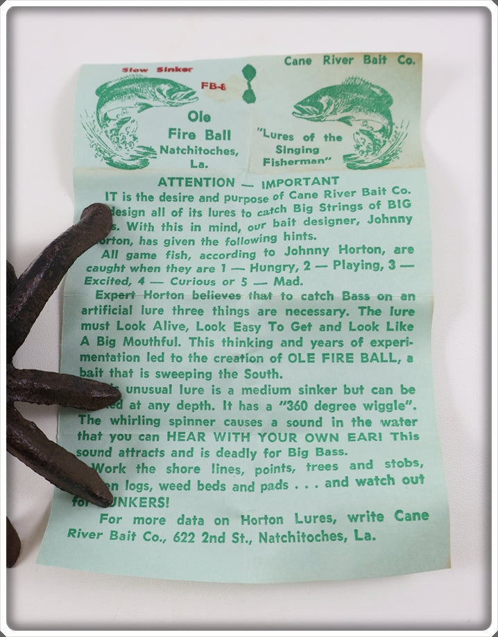 This is a nice old Johnny Horton Shad Fireball lure that was sold on Tough Lures! Vintage and antique fishing lures are added for sale often so keep checking back! I buy old lures so feel free to contact me if you have any to sell.