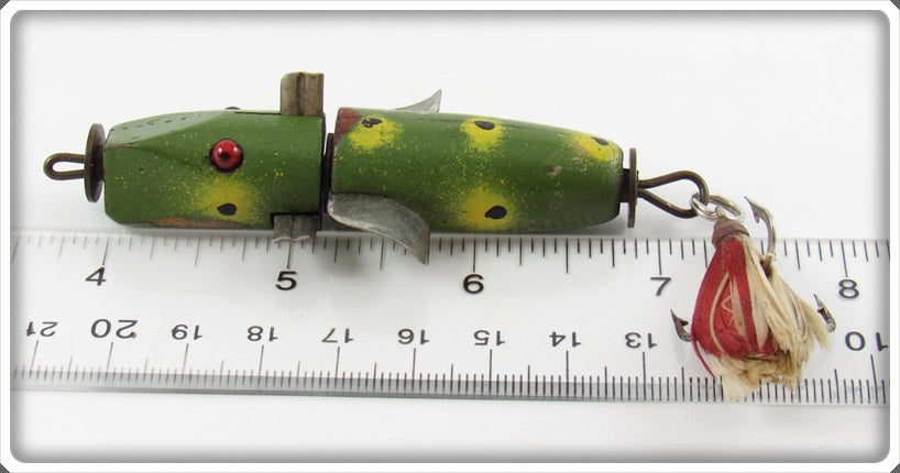 This is a nice old Kumm's Frog Spotted Wood Fish Spotter lure that was sold on Tough Lures! Vintage and antique fishing lures are added for sale often so keep checking back! I buy old lures so feel free to contact me if you have any to sell.