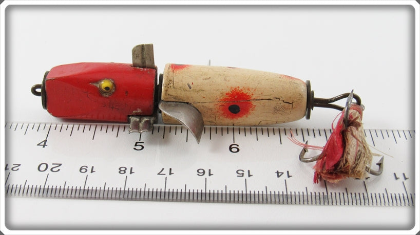 This is a nice old Kumm's Red & White Wood Fish Spotter lure that was sold on Tough Lures! Vintage and antique fishing lures are added for sale often so keep checking back! I buy old lures so feel free to contact me if you have any to sell.