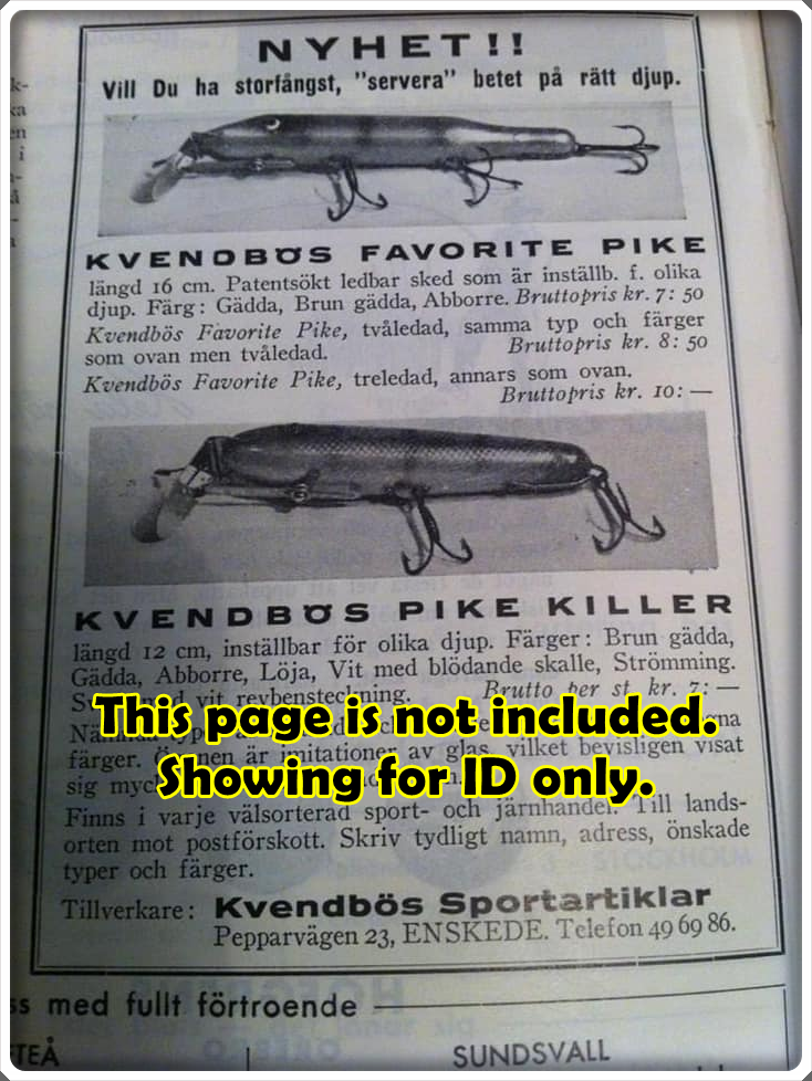 This is a nice old Kvendbos Sporting Goods Perch Pike Killer lure that was sold on Tough Lures! Vintage and antique fishing lures are added for sale often so keep checking back! I buy old lures so feel free to contact me if you have any to sell.
