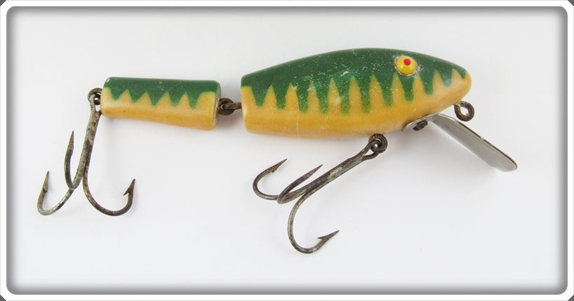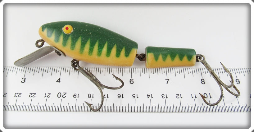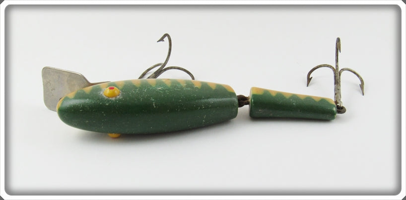 This is a nice old L & S Bait Company White With Green Stripes Jumbo Shiner Minnow lure that was sold on Tough Lures! Vintage and antique fishing lures are added for sale often so keep checking back! I buy old lures so feel free to contact me if you have any to sell.