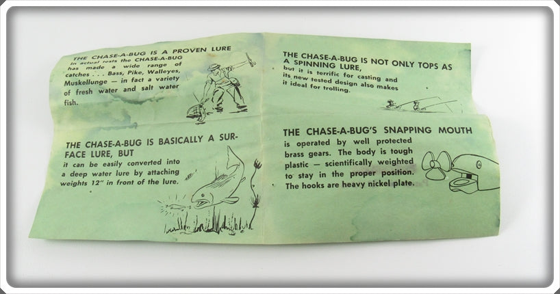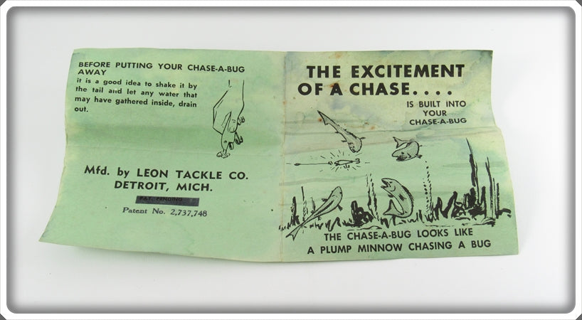 This is a nice old Leon Tackle Co Black Chase A Bug lure that was sold on Tough Lures! Vintage and antique fishing lures are added for sale often so keep checking back! I buy old lures so feel free to contact me if you have any to sell.