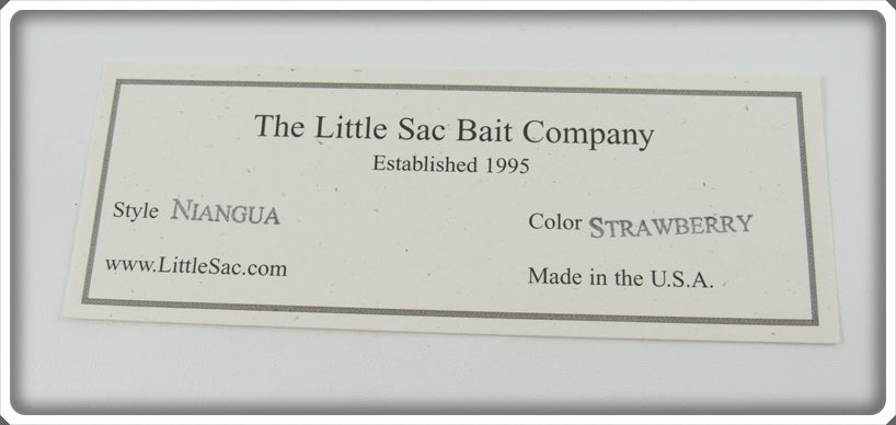 This is a nice Little Sac Bait Co Strawberry Niangua Minnow lure that was sold on Tough Lures! Vintage and antique fishing lures are added for sale often so keep checking back! I buy old lures so feel free to contact me if you have any to sell.