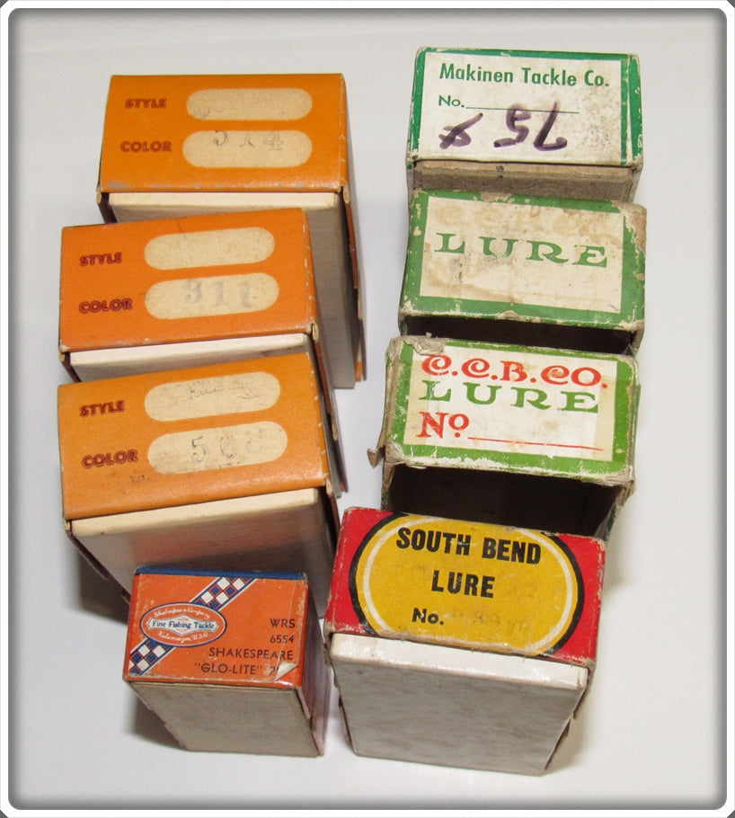 This is a nice old Lot Of Lure Boxes that was sold on Tough Lures! Vintage and antique fishing lures are added for sale often so keep checking back! I buy old lures so feel free to contact me if you have any to sell.