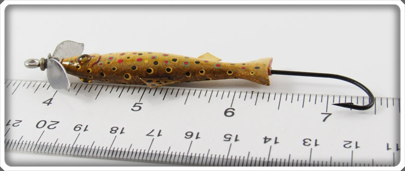 This is a nice old Macatawa Bait Co Brown Trout Minnow lure that was sold on Tough Lures! Vintage and antique fishing lures are added for sale often so keep checking back! I buy old lures so feel free to contact me if you have any to sell.