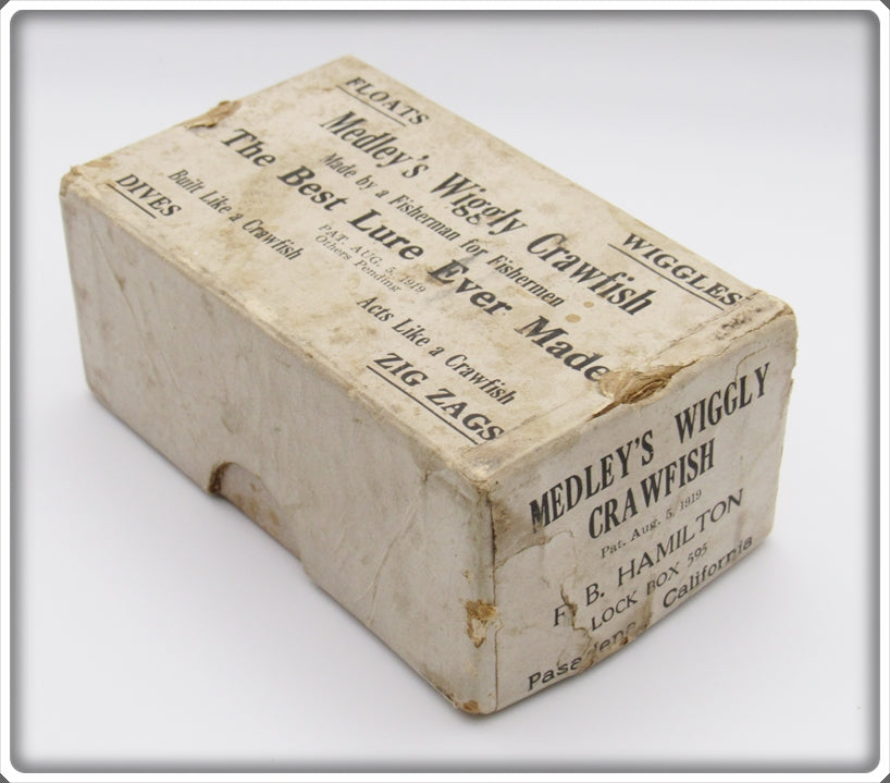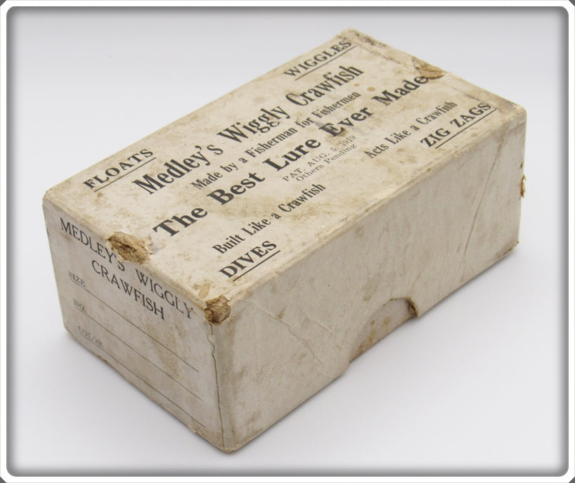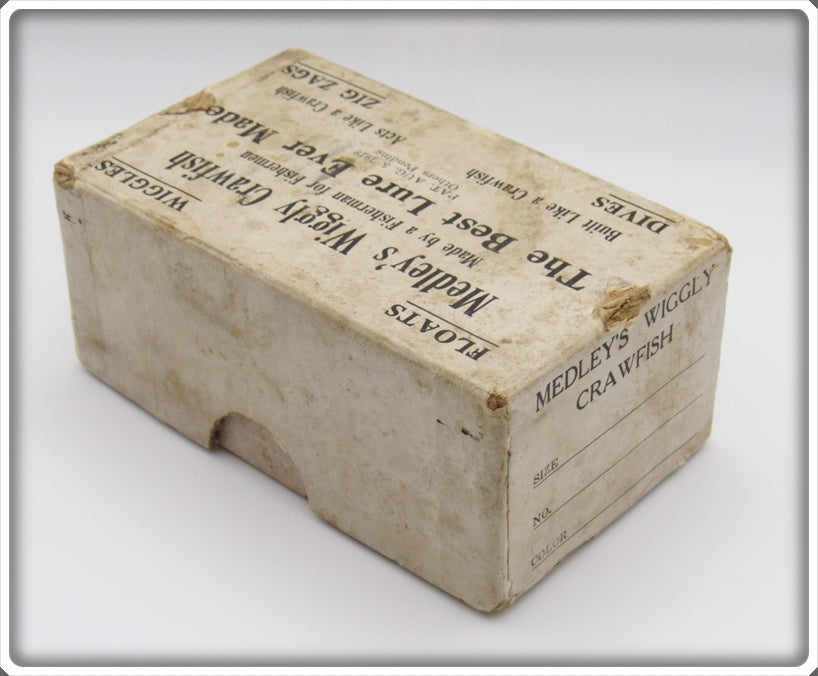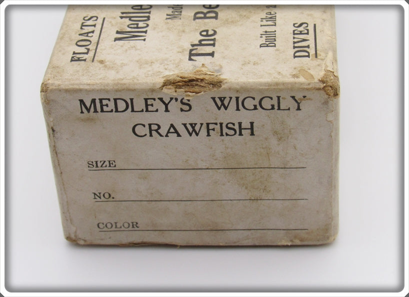 This is a nice old Medley's Yellow & Green Wiggly Crawfish lure that was sold on Tough Lures! Vintage and antique fishing lures are added for sale often so keep checking back! I buy old lures so feel free to contact me if you have any to sell.